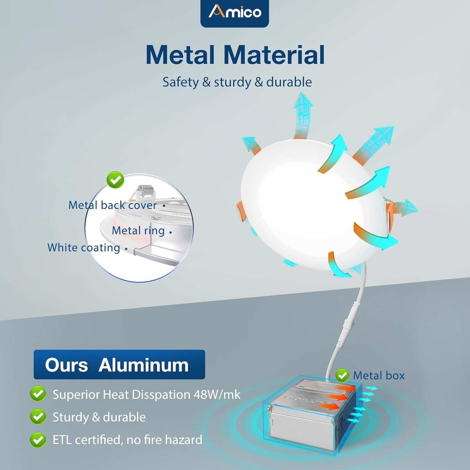 - Amico Benefits: 5-Year Warranty! The whole Amico's recessed lighting is certified by ETL of a high standard.