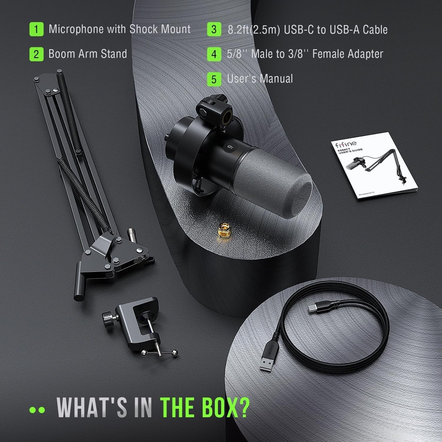 - [Enhanced Noise Suppression] The included windscreen and shock mount set on the PC microphone for music recording effectively do away with harsh noises caused by explosive sounds and low-frequency vibrations. The heavy-duty boom arm maintains distance from your desktop, preventing noise interference, resulting in smoother, clearer vocals during voice-over and streams. (For optimal input volume, adjust input volume via the mic's gain knob in USB connection, or control on your audio interface when XLR connection.)