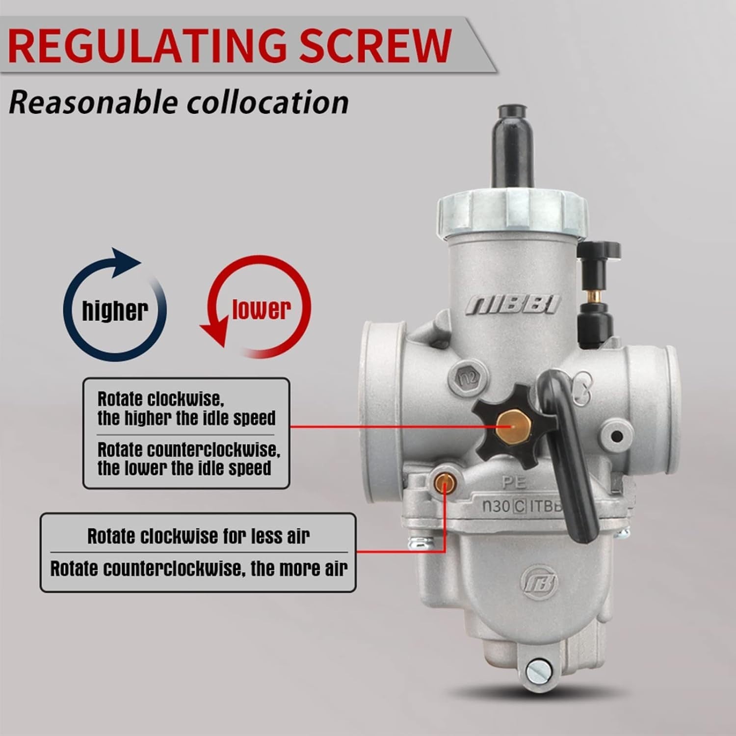 NIBBI PE30 Carb 30mm Carburetor Motorcycle Carburetor with Carb Jets Fit 250cc—300cc Motorcycle Engine for Dirt Bike Mini Bike Apollo Scooter Moped