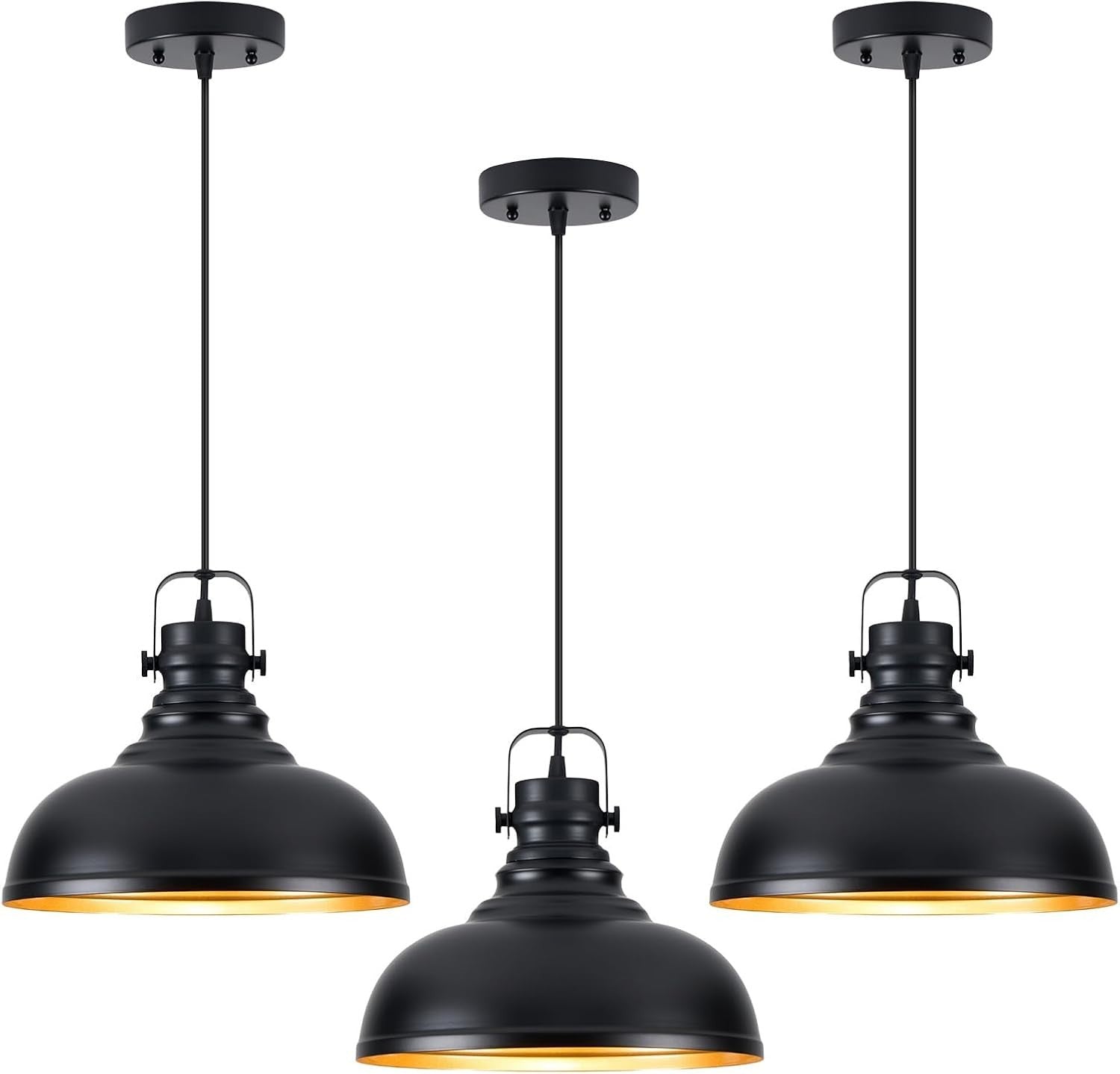 - Industrial & Vintage Charm: Choose the perfect set size 3 pack pendant lights kitchen island to create custom configurations that perfectly suit your unique space. The kitchen island lighting with matte black-finished exterior and light-reflecting gold-finished interior create a farmhouse appeal, perfect for various spaces like home, dining rooms, kitchen islands, warehouses, and more