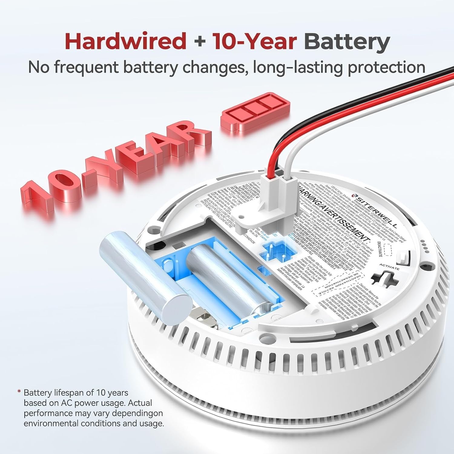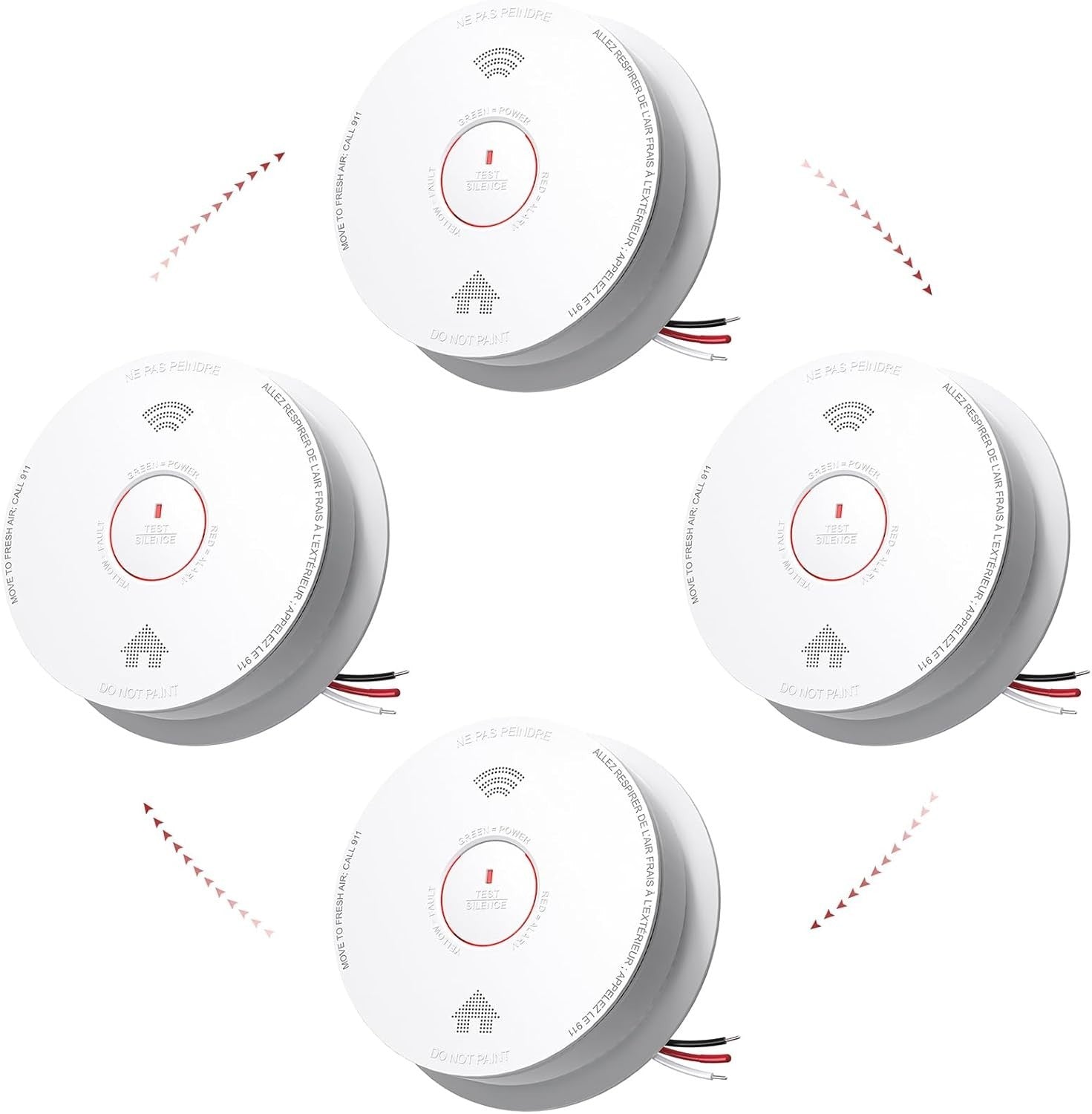 Siterlink Hardwired Smoke Detector Carbon Monoxide Detector Combo 10 Year Battery up, UL 217-9th Conforming, Interconnected Smoke & CO Alarm with Bilingual Voice Alerts, 4 Pack